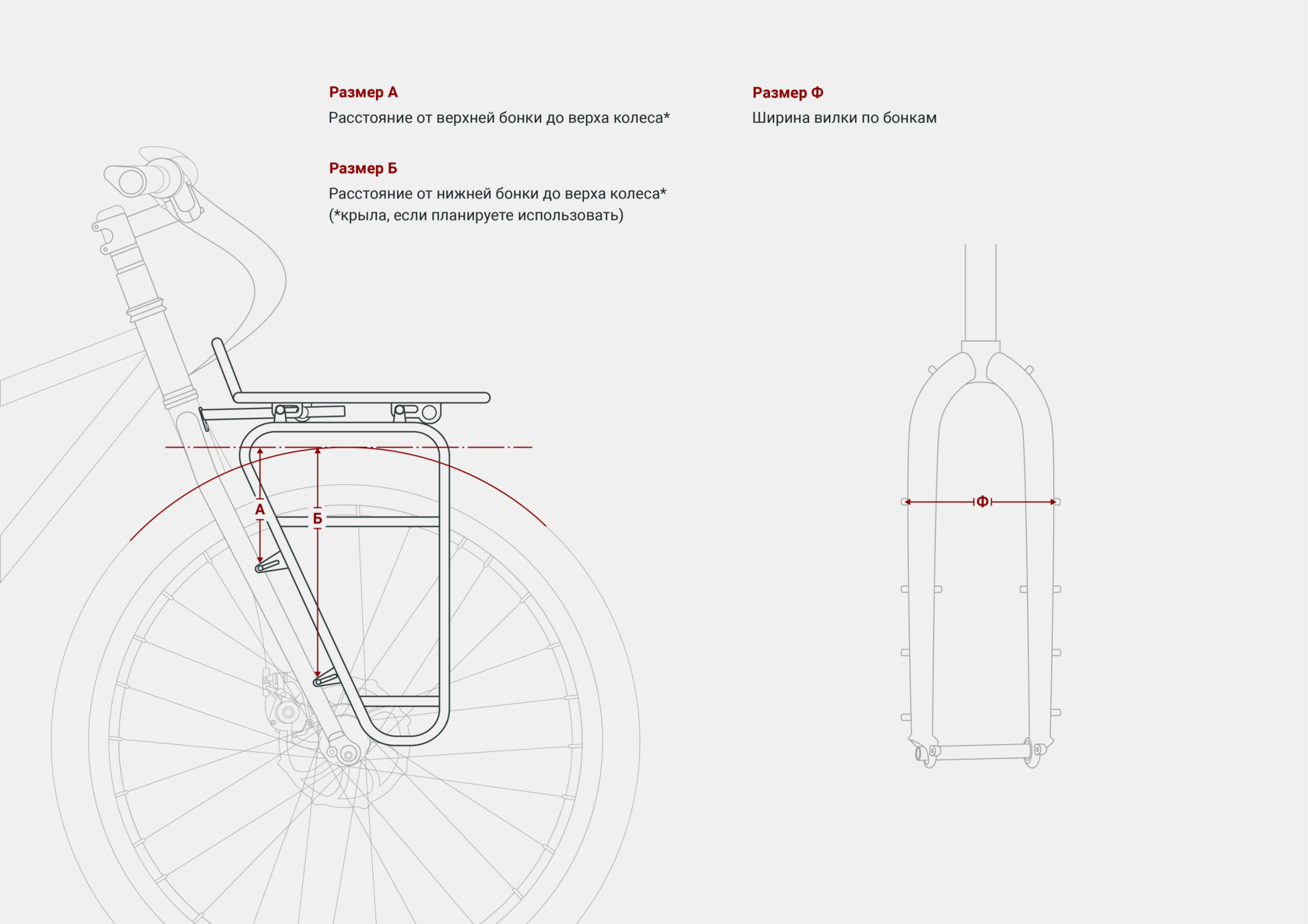 Передние багажники универсальны, имеют 3 вида платформ (Пицца и два вида узких платформ Мини). Отличаются также способом крепления: на легких опорах, на больших или малых боковинах. Все крепления тоже универсальны и подойдут для любой вилки с резьбовыми бонками. А также они взаимозаменяемы, в зависимости от ваших задач.